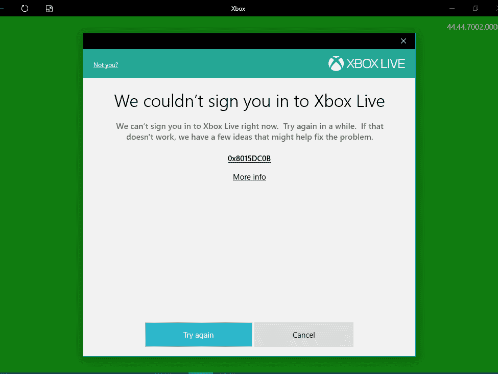 Xbox live app error 0x87dd0005 trouble signing · make sure that you've connected to the internet.